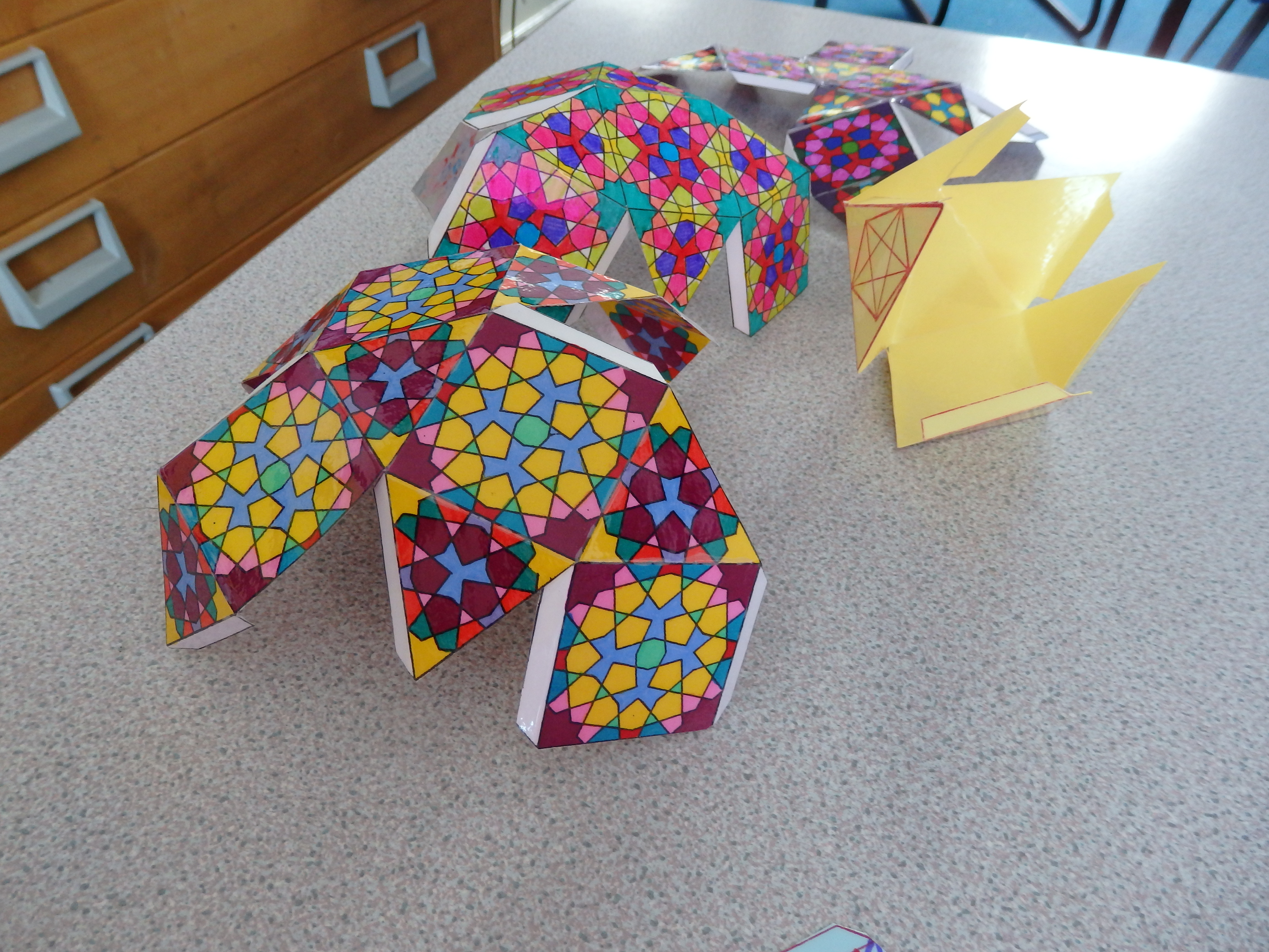 Fantastic Sacred and islamic Geometry and Pattern workshops with the children of Ash Hill Academy in Doncaster…. Lots of pattern constructing, colour filling and 3D polhedral shape building..