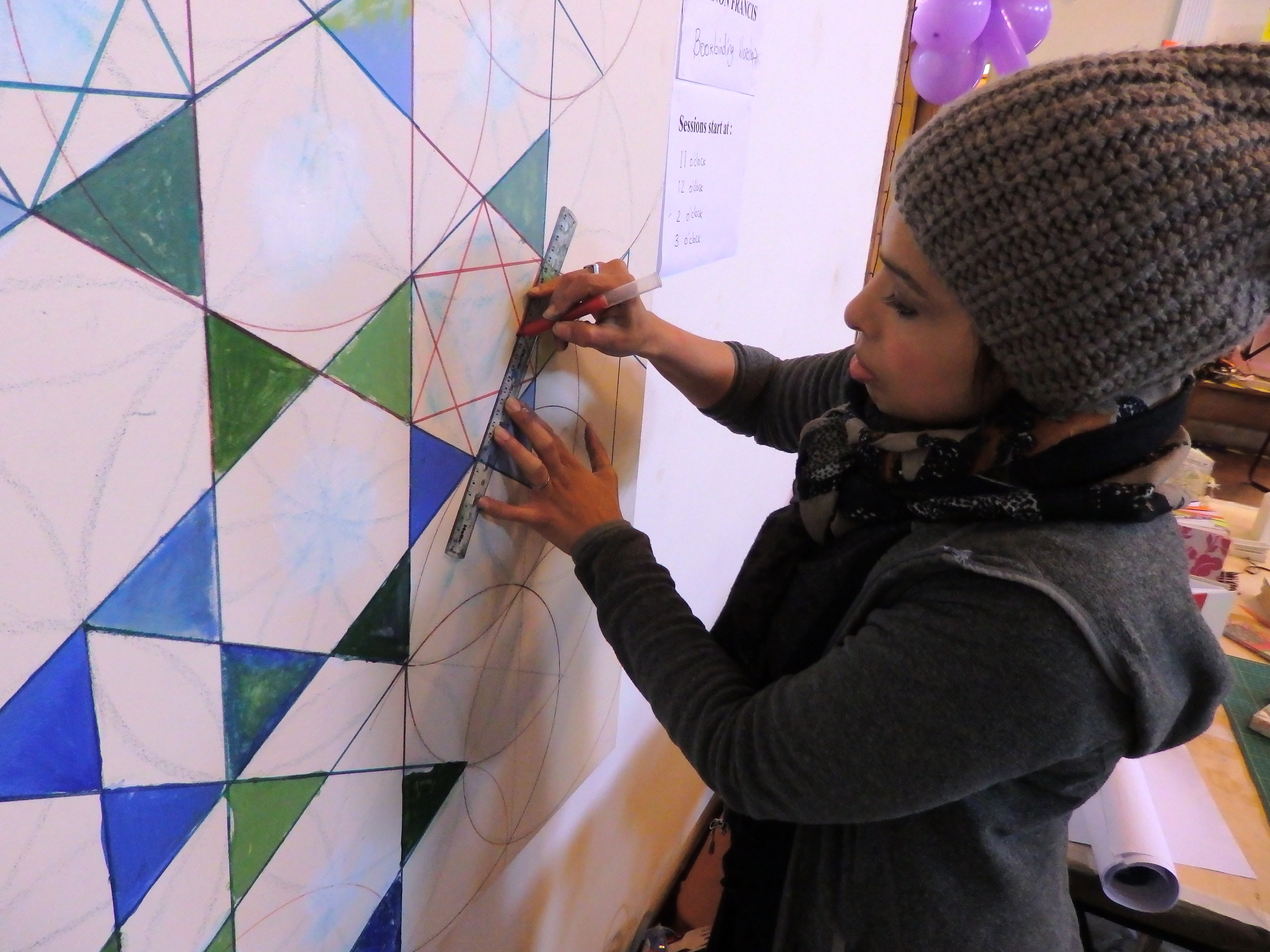 An inspiring, creative and fun day at Bureau of Arts Centre. A big shout and Thank You to all participants, including Kerris for organising, and making this community Geometric mural possible… Lots of enthusiastic and creative buddies helped to paint this mural..